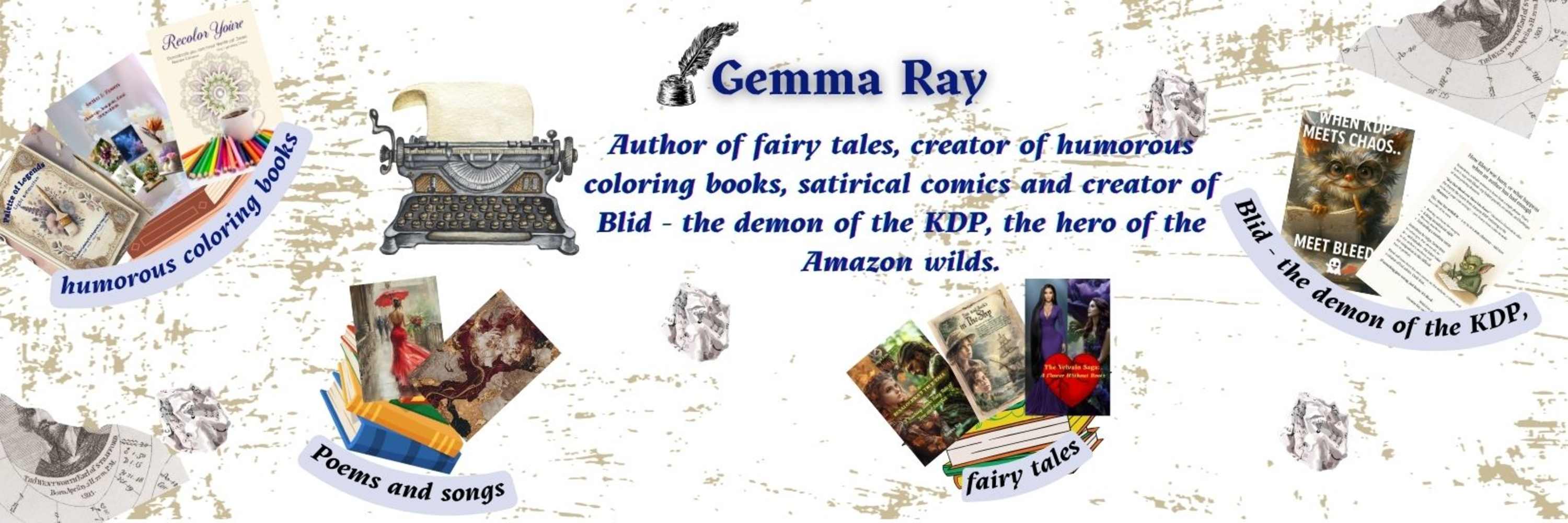 Welcome to the world of Gemma Ray — where cozy gardens bloom in coloring books, fantasy adventures twist through time, and mischievous gremlins sometimes co-author chapters.